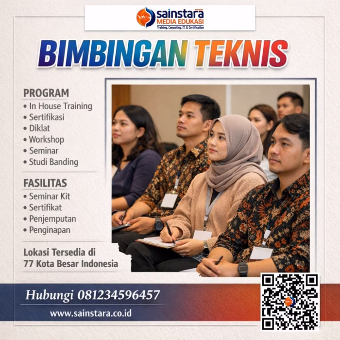 Untuk mendapatkan informasi lebih lengkap mengenai berbagai pilihan pelatihan/training lainnya yang kami selenggarakan, silakan kunjungi website resmi Sainstara. Melalui website tersebut, Anda dapat menemukan daftar program pelatihan terbaru, jadwal kegiatan, serta detail materi yang dirancang untuk mendukung peningkatan kompetensi dan profesionalisme Anda.
