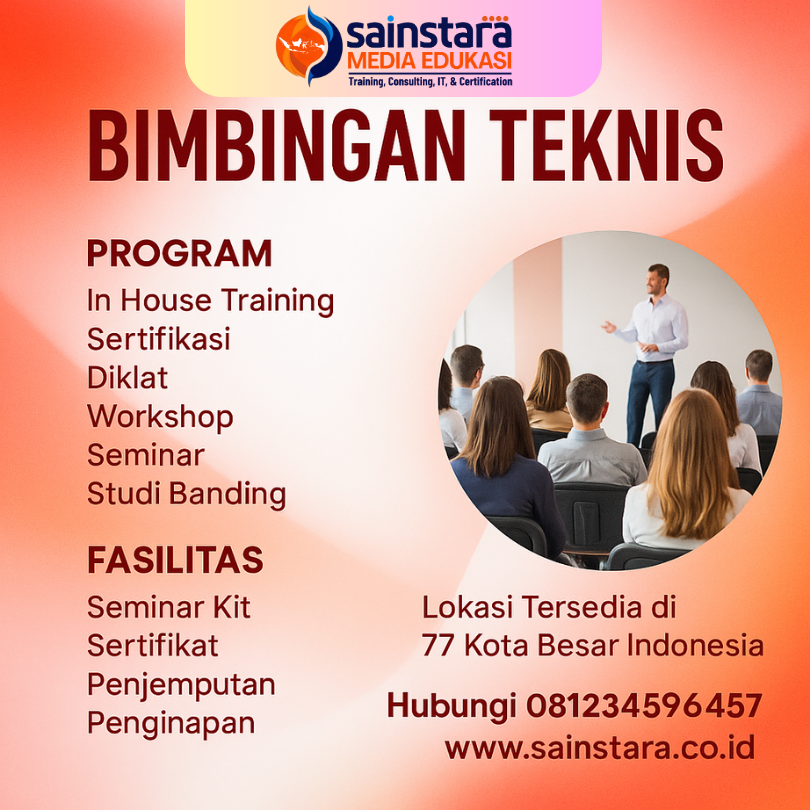 Hubungi SAINSTARA sekarang melalui WhatsApp untuk informasi lebih lanjut dan pendaftaran Program Bimbingan Teknis. Tingkatkan kompetensi Anda bersama konsultan profesional terpercaya!