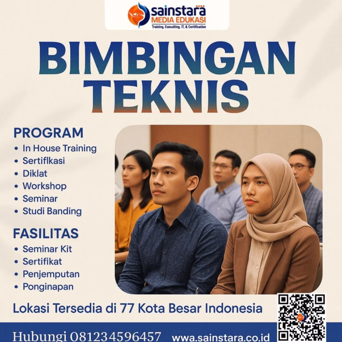 Untuk mendapatkan informasi lebih lengkap mengenai berbagai pilihan pelatihan/training lainnya yang kami selenggarakan, silakan kunjungi website resmi Sainstara. Melalui website tersebut, Anda dapat menemukan daftar program pelatihan terbaru, jadwal kegiatan, serta detail materi yang dirancang untuk mendukung peningkatan kompetensi dan profesionalisme Anda.