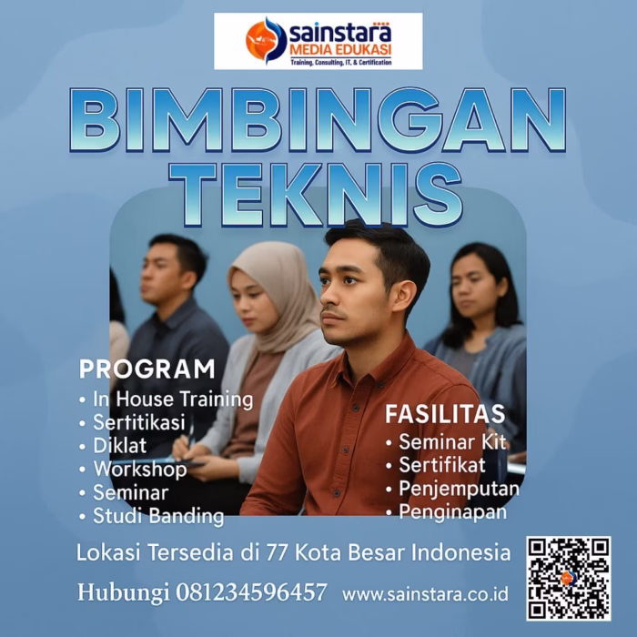 Untuk mendapatkan informasi lebih lengkap mengenai berbagai pilihan pelatihan/training lainnya yang kami selenggarakan, silakan kunjungi website resmi Sainstara. Melalui website tersebut, Anda dapat menemukan daftar program pelatihan terbaru, jadwal kegiatan, serta detail materi yang dirancang untuk mendukung peningkatan kompetensi dan profesionalisme Anda.