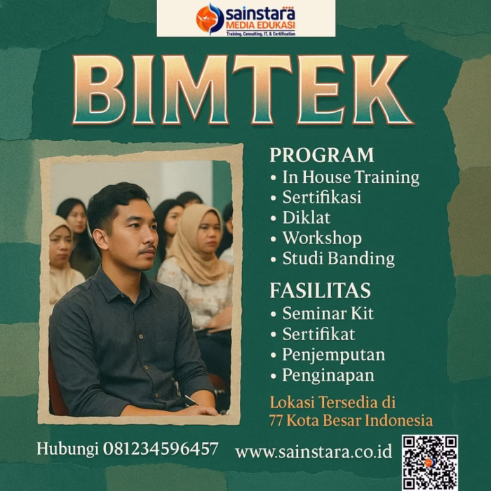 Untuk mendapatkan informasi lebih lengkap mengenai berbagai pilihan pelatihan/training lainnya yang kami selenggarakan, silakan kunjungi website resmi Sainstara. Melalui website tersebut, Anda dapat menemukan daftar program pelatihan terbaru, jadwal kegiatan, serta detail materi yang dirancang untuk mendukung peningkatan kompetensi dan profesionalisme Anda.