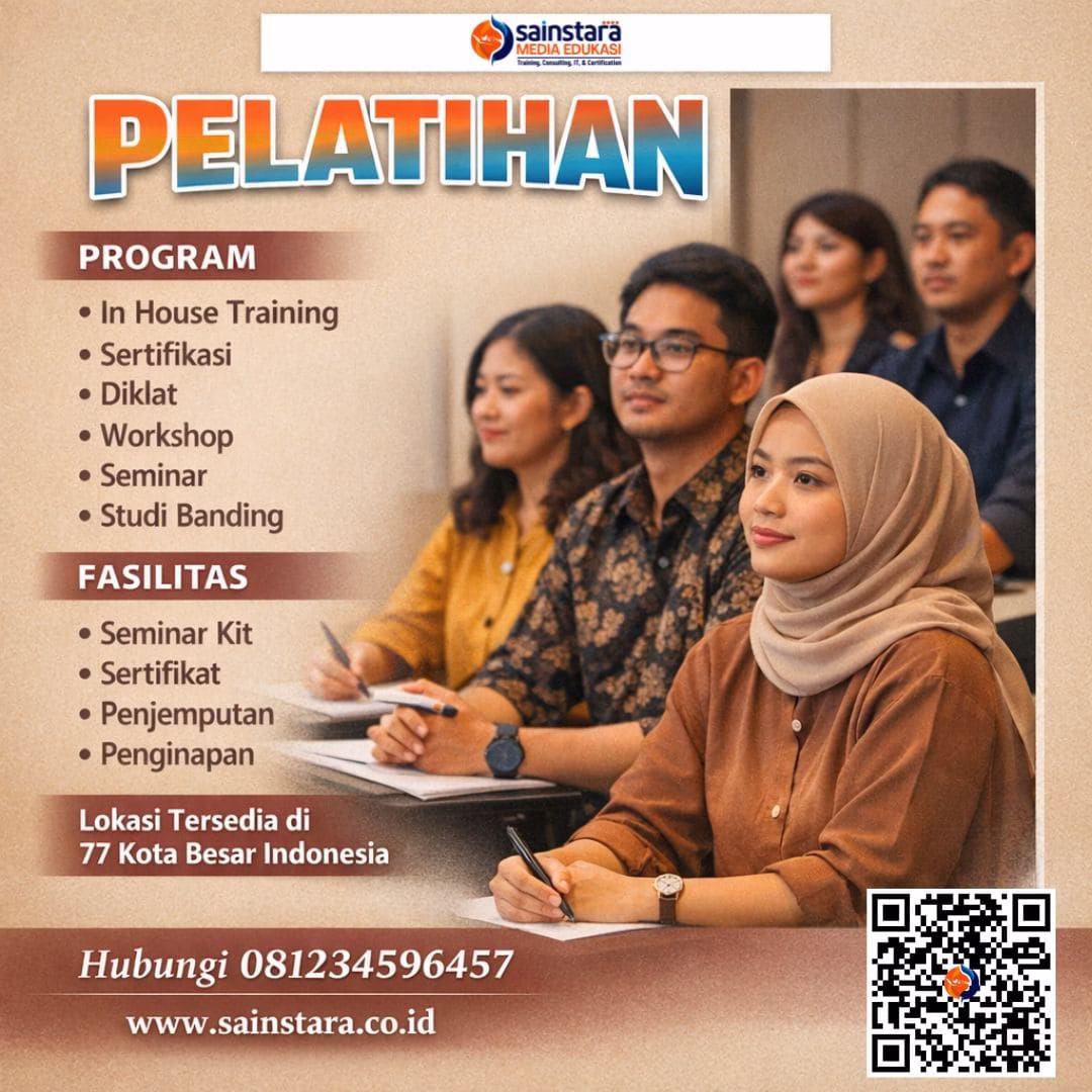 Untuk mendapatkan informasi lebih lengkap mengenai berbagai pilihan pelatihan/training lainnya yang kami selenggarakan, silakan kunjungi website resmi Sainstara. Melalui website tersebut, Anda dapat menemukan daftar program pelatihan terbaru, jadwal kegiatan, serta detail materi yang dirancang untuk mendukung peningkatan kompetensi dan profesionalisme Anda.