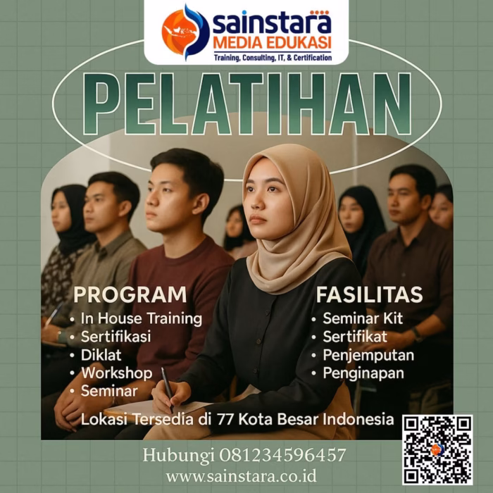 Untuk mendapatkan informasi lebih lengkap mengenai berbagai pilihan pelatihan/training lainnya yang kami selenggarakan, silakan kunjungi website resmi Sainstara. Melalui website tersebut, Anda dapat menemukan daftar program pelatihan terbaru, jadwal kegiatan, serta detail materi yang dirancang untuk mendukung peningkatan kompetensi dan profesionalisme Anda.