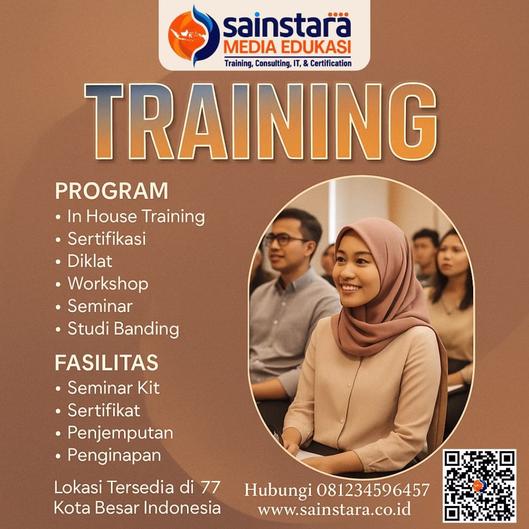 Untuk mendapatkan informasi lebih lengkap mengenai berbagai pilihan pelatihan/training lainnya yang kami selenggarakan, silakan kunjungi website resmi Sainstara. Melalui website tersebut, Anda dapat menemukan daftar program pelatihan terbaru, jadwal kegiatan, serta detail materi yang dirancang untuk mendukung peningkatan kompetensi dan profesionalisme Anda.