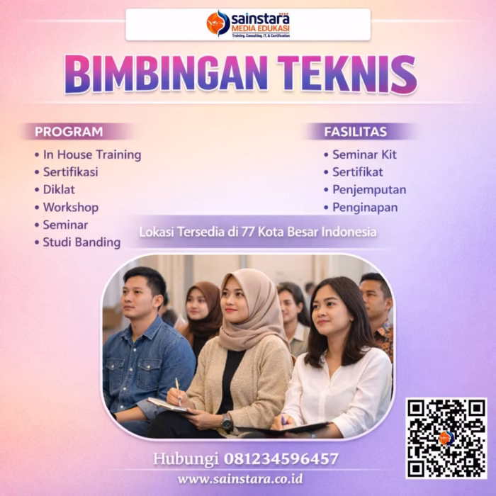 Untuk mendapatkan informasi lebih lengkap mengenai berbagai pilihan pelatihan/training lainnya yang kami selenggarakan, silakan kunjungi website resmi Sainstara. Melalui website tersebut, Anda dapat menemukan daftar program pelatihan terbaru, jadwal kegiatan, serta detail materi yang dirancang untuk mendukung peningkatan kompetensi dan profesionalisme Anda.