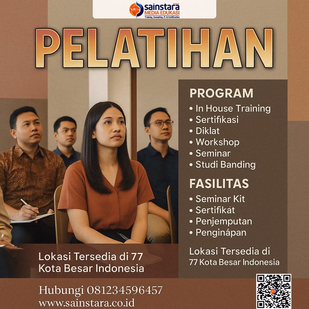 Untuk mendapatkan informasi lebih lengkap mengenai berbagai pilihan pelatihan/training lainnya yang kami selenggarakan, silakan kunjungi website resmi Sainstara. Melalui website tersebut, Anda dapat menemukan daftar program pelatihan terbaru, jadwal kegiatan, serta detail materi yang dirancang untuk mendukung peningkatan kompetensi dan profesionalisme Anda.