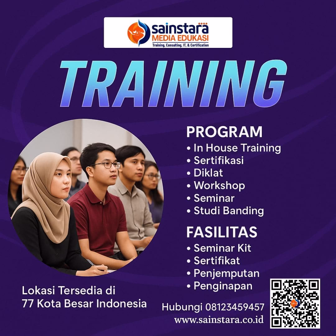 Untuk mendapatkan informasi lebih lengkap mengenai berbagai pilihan pelatihan/training lainnya yang kami selenggarakan, silakan kunjungi website resmi Sainstara. Melalui website tersebut, Anda dapat menemukan daftar program pelatihan terbaru, jadwal kegiatan, serta detail materi yang dirancang untuk mendukung peningkatan kompetensi dan profesionalisme Anda.