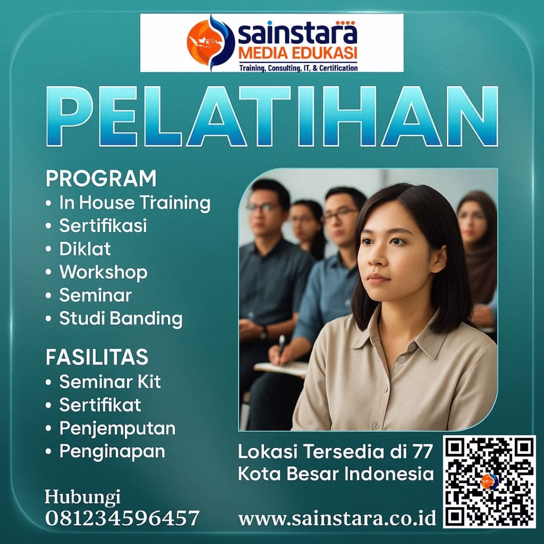 Untuk mendapatkan informasi lebih lengkap mengenai berbagai pilihan pelatihan/training lainnya yang kami selenggarakan, silakan kunjungi website resmi Sainstara. Melalui website tersebut, Anda dapat menemukan daftar program pelatihan terbaru, jadwal kegiatan, serta detail materi yang dirancang untuk mendukung peningkatan kompetensi dan profesionalisme Anda.