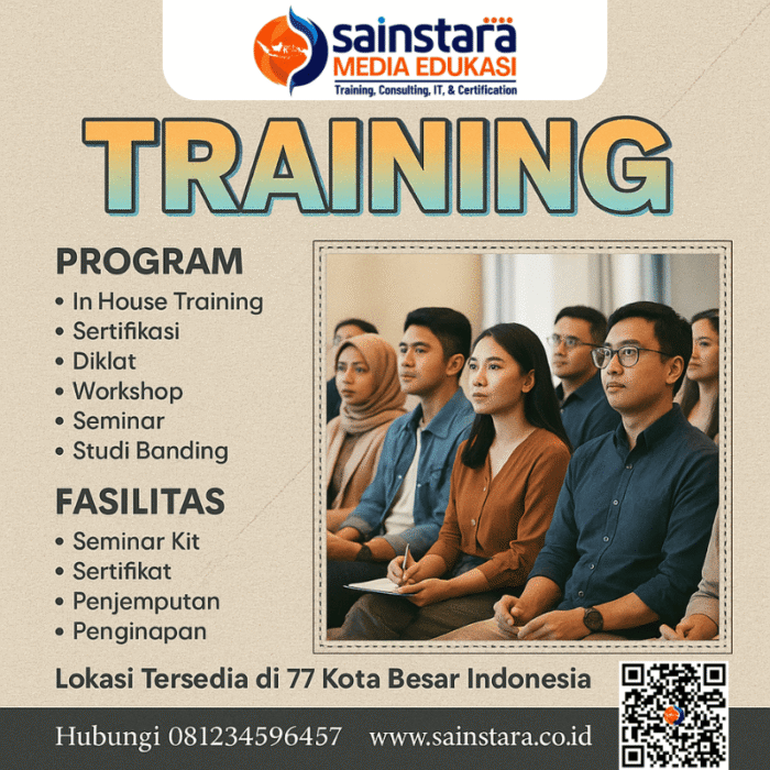 Apakah pelatihan ini memberikan sertifikat resmi? Ya, setiap peserta yang menyelesaikan pelatihan akan mendapatkan sertifikat resmi dari SAINSTARA yang dapat digunakan untuk pengembangan karir dan portofolio profesional.