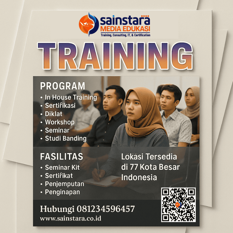 Berapa lama durasi pelatihan ini dan bagaimana format pelaksanaannya? Pelatihan dilaksanakan selama 3 hari dengan total 24 jam pembelajaran intensif. Format dapat disesuaikan dengan kebutuhan, baik classroom training, in-house training, atau hybrid learning yang menggabungkan online dan offline session.