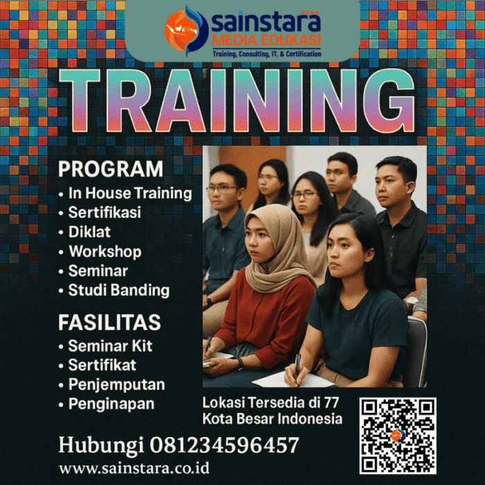 - Training Kit (Dokumentasi photo, Blocknote, ATK, etc)